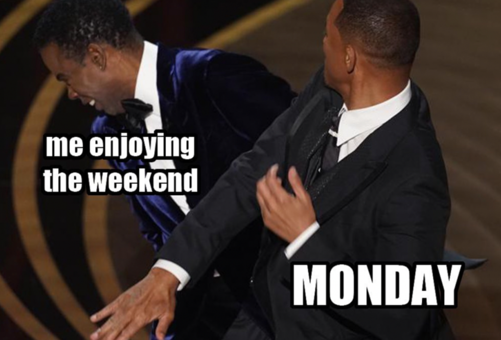 Como hemos mencionado, la mayoría de los memes se crean a partir de imágenes de celebridades con gestos particulares o momentos virales como lo fue el bofetón de Will Smith en los Oscars. Podemos ver dos frases en el meme: