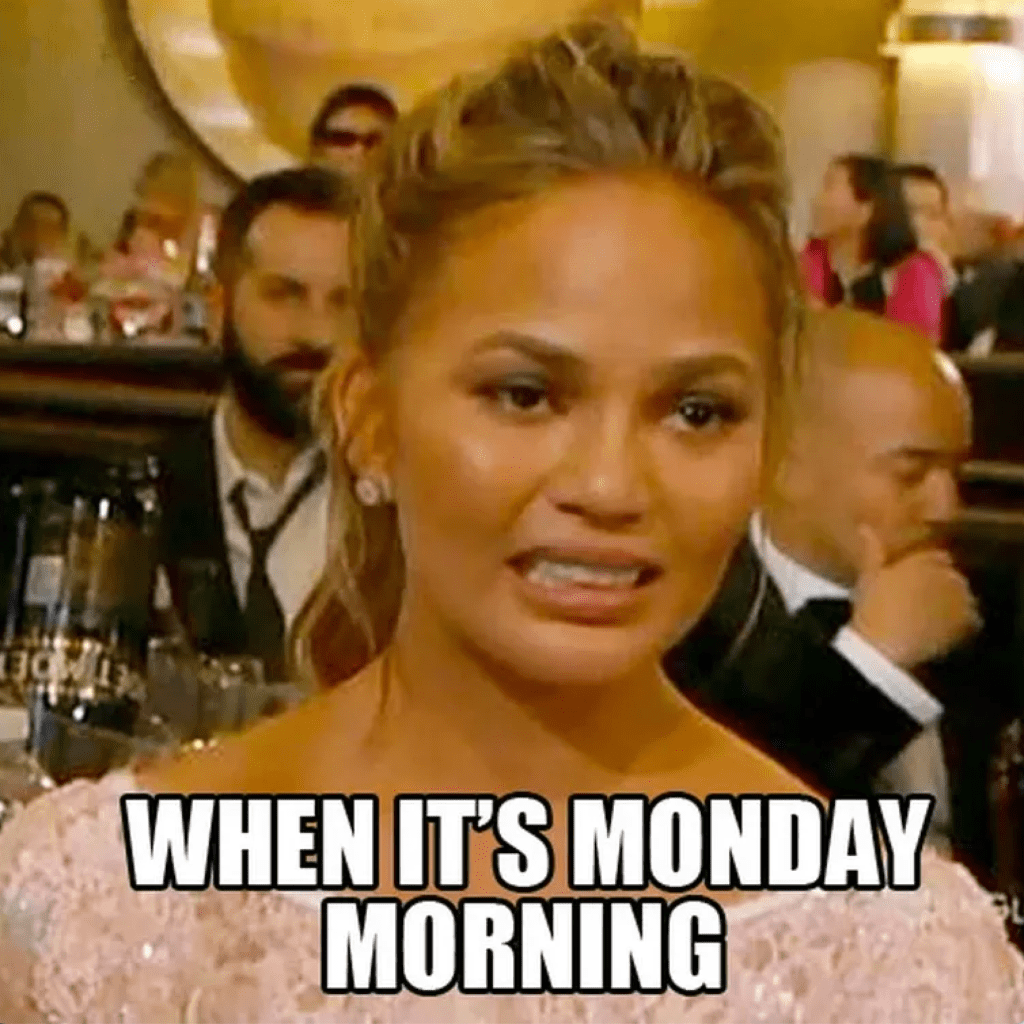 La mayoría de los memes en inglés están realizados con caras de famosos, escenas de series, películas, etc. Es el caso de este meme en donde se coloca la cara simpática de la modelo Chrissy Teigen, con el texto When it’s monday morning: Cuando es lunes por la mañana.