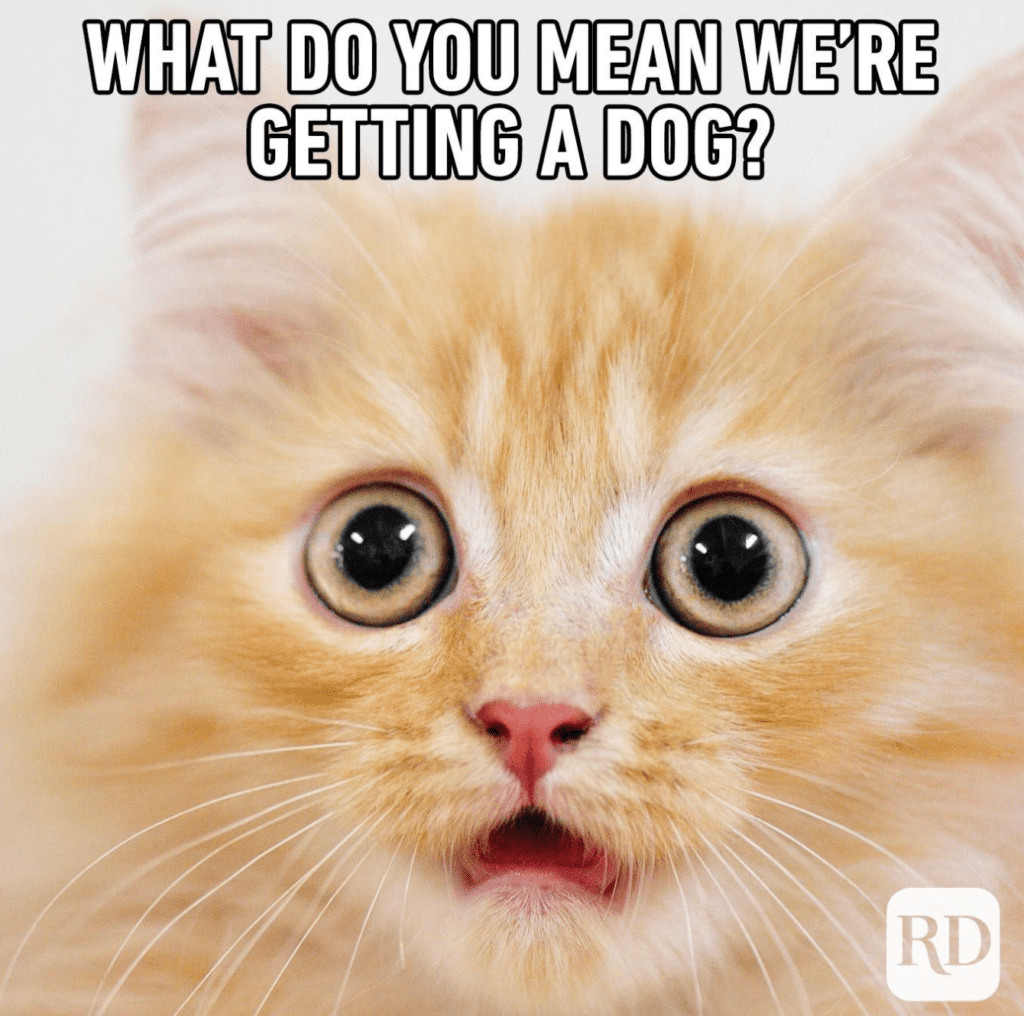 Los animales también son protagonistas de muchos memes en inglés que han sido virales, solo hace falta un animalito con un gesto cómico y listo, las posibilidades son infinitas. Por ejemplo en este meme vemos a un gatito con una cara de susto o sorpresa preguntando: